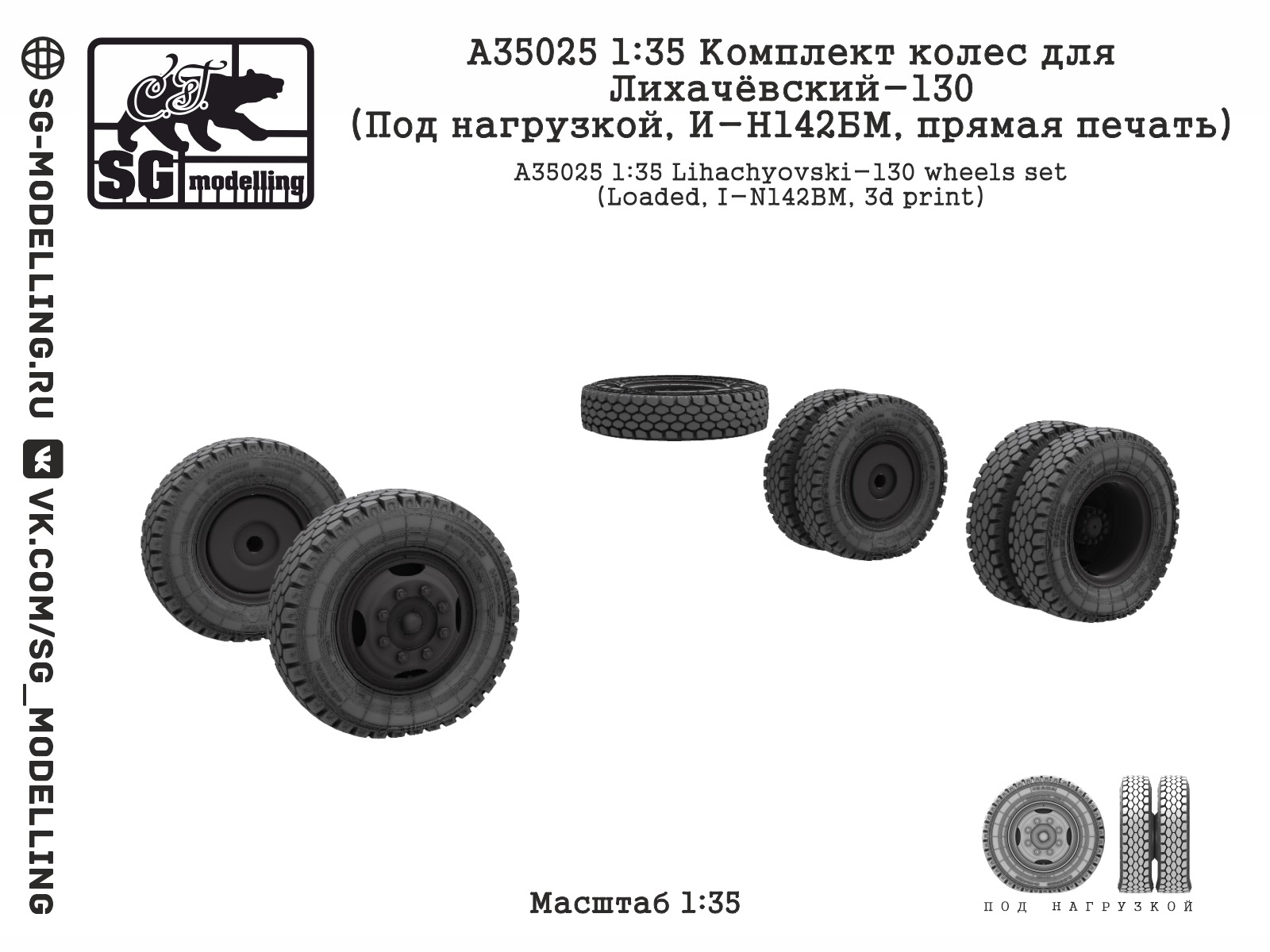 Описание Комплект колес для Лихачёвский З&Л-130 (Под нагрузкой, И-Н142БМ) (1:35)