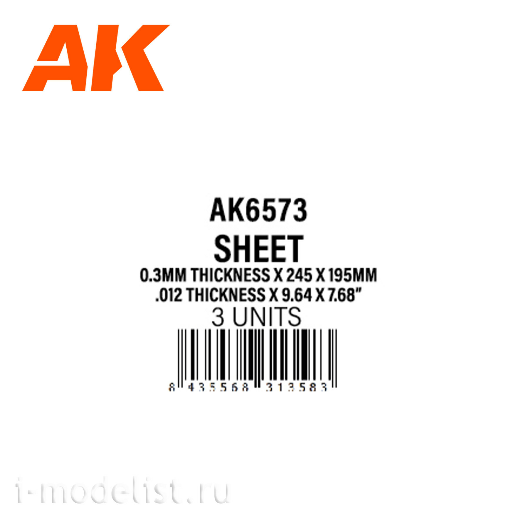 Купить AK6573 AK INTERACTIVE ЛИСТ ПОЛИСТИРОЛА ТОЛЩИНА 0.3 ММ X 245 X 195 ММ (3 ШТУКИ)