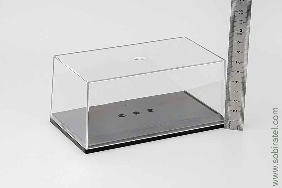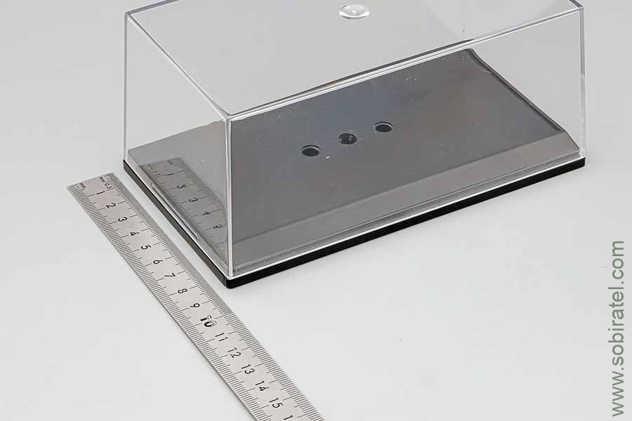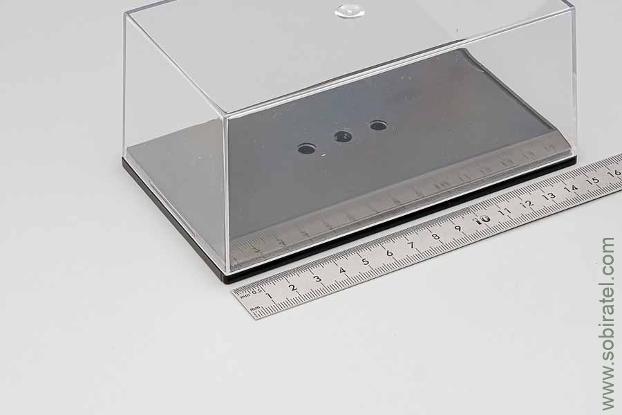 Описание: Бокс рассчитан на легковые модели масштаба 1:43. Размеры: 155 х 90 х 70 мм, расстояние внутри бокса от верха основания до колпака 57 мм. Указаны внешние (габаритные) размеры бокса! В комплекте с боксом S&B идут две опоры. Высоту опор можно изменить с 10 до 6 мм, укоротив их. Коробка имеет усиленные боковые стенки, для предотвращения повреждений бокса при транспортировке. Чёрный подиум (устойчив к воздействию шин моделей, не плавится); В комплект поставки бокса входит: 1. Бокс (основание и колпак) 2. Две опоры для крепления моделей 3. Два самореза для крепления моделей и 2 шайбы 4. Упаковка из картона В боксах S&B можно не только держать модели, но и размещать мини-диорамы, а также другие объекты коллекционирования, подходящие по размерам.