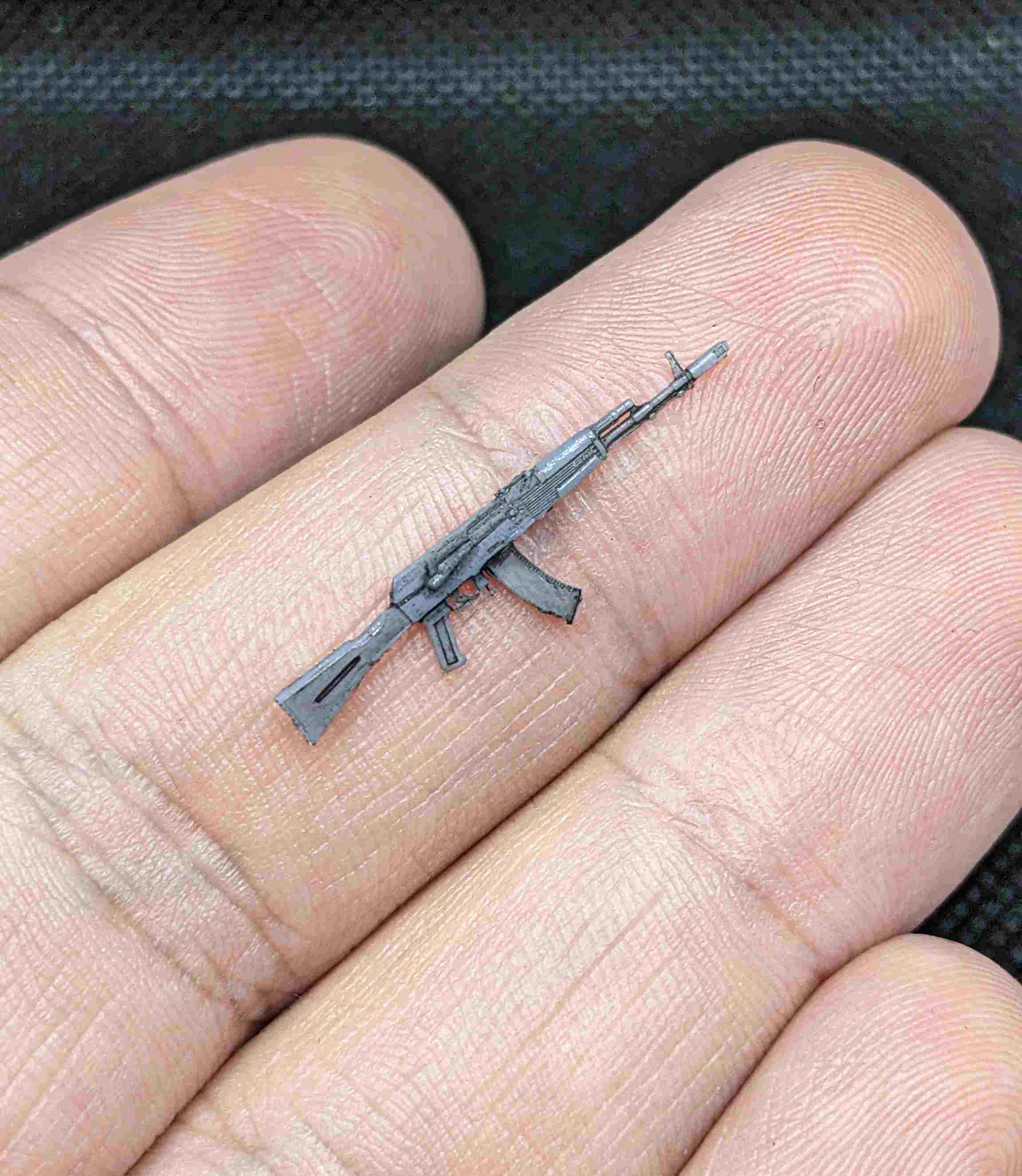 Описание Модели выполнены в 35м масштабе - самом распространенном масштабе для военно-исторических моделей. В наборе идет 5 штук моделей автомата, к каждому автомату идет по 2 переключателя огня, где один запасной в случае потери столь мелкой детали, и по 2 магазина один для крепления к автомату, а второй несет декоративную функцию. Переключатель огня идет отдельной деталью, что бы моделист мог сам выбрать какой выставить режим огня на миниатюре, исходя из своей задумки исполнения. Модели произведены из фотополимерной смолы серого цвета с высокой степенью детализации. Модели поставляются в разобранном виде на поддержках для лучшей сохранности при транспортировке и неокрашенные. (Клей и краски не входят в набор) Склейка производится цианакрилатным клеем (монолит/секундный/супер клей/космофен). Клей и краски не входят в комплект.