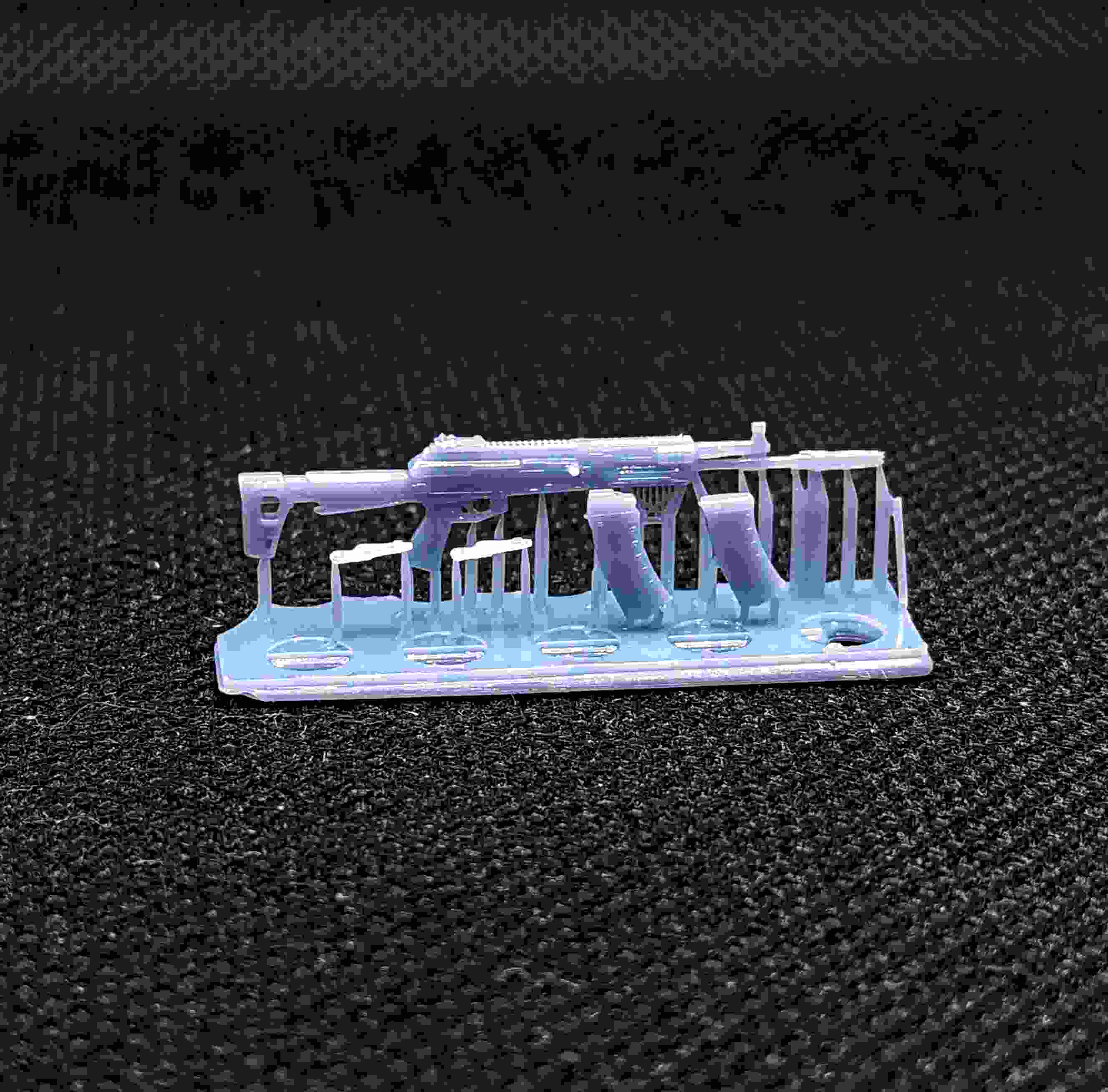 Описание Модели выполнены в 35м масштабе - самом распространенном масштабе для военно-исторических моделей. В наборе идет 5 штук моделей автомата, к каждому автомату идет по 2 переключателя огня, где один запасной в случае потери столь мелкой детали, и по 2 магазина один для крепления к автомату, а второй несет декоративную функцию. Переключатель огня идет отдельной деталью, что бы моделист мог сам выбрать какой выставить режим огня на миниатюре, исходя из своей задумки исполнения. Модели произведены из фотополимерной смолы серого цвета с высокой степенью детализации. Модели поставляются в разобранном виде на поддержках для лучшей сохранности при транспортировке и неокрашенные. (Клей и краски не входят в набор) Склейка производится цианакрилатным клеем (монолит/секундный/супер клей/космофен). Клей и краски не входят в комплект.