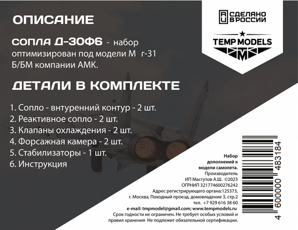 Описание СОПЛА Д-30Ф6 - набор оптимизирован под модели Миг-31 Б/БМ компании АМК.