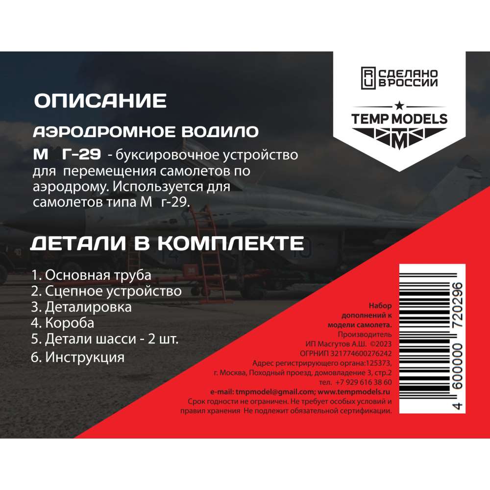 48029 ДОПОЛНЕНИЯ ИЗ СМОЛЫ АЭРОДРОМНОЕ ВОДИЛО M&G-29 (1/48) продается в 1 магазинах. Выберите подходящий Вам интернет-магазин и перейдите по ссылке «В магазин».