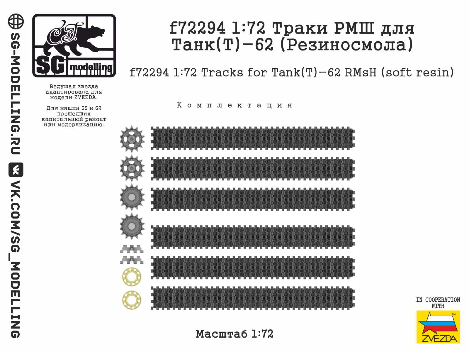 F72294 ТРАКИ РМШ ДЛЯ ТАНК-62 РЕЗИНОСМОЛА, ZVEZDA (1/72) продается в 1 магазинах. Выберите подходящий Вам интернет-магазин и перейдите по ссылке «В магазин».
