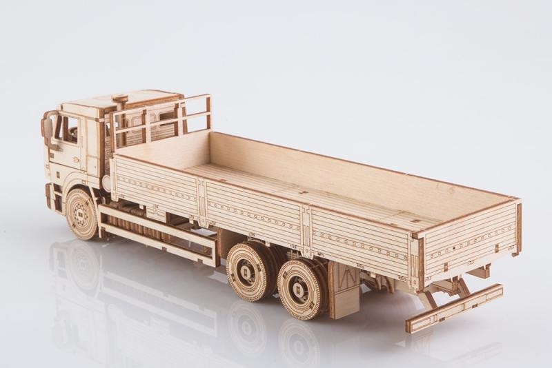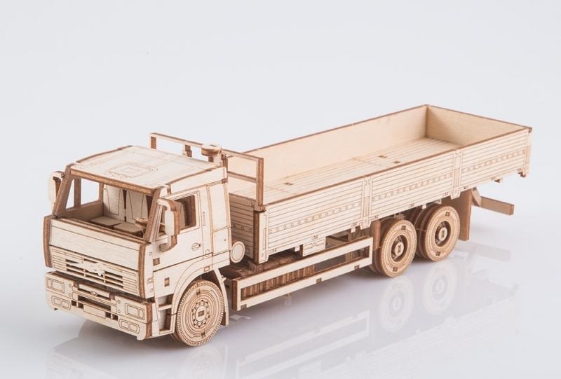 Описание Сборная масштабная модель бортового грузовика К@М@З-65117 (без тента) из фанеры. Детали изготовлены методом лазерной резки. Для сборки понадобятся столярный клей ПВА, модельный нож, надфиль (или наждачная бумага/губка). При желании модель можно окрасить или покрыть морилкой/лаком.