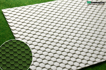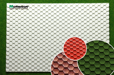 Объемная пластмассовая текстура шестигранной черепицы Шинглас для кукольных домиков и румбоксов в масштабе 1/24, а так же диорам и макетов в масштабе 1/20 или 1/25. Размер пластиковой панели формат А4- 190мм. Х 280мм. (19х28 см.).