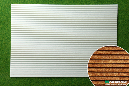 Выпуклая пластиковая текстура имитирующая обшивку стен вагонкой. Применяется для изготовления кукольных домиков и румбоксов в масштабе 1/24, а так же диорам и макетов в масштабе 1/20 или 1/25. Размер пластиковой панели формат А4 - 190мм. Х 280мм. (19х28 см.).