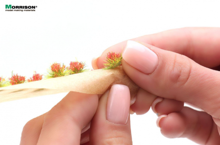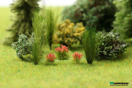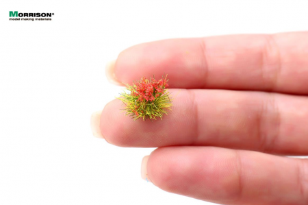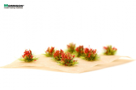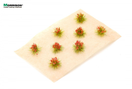 Красные цветущие пучки для дополнения ландшафта макета или диорамы. Набор 8 штук. Высота пучков 5-6 мм.