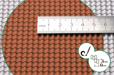 Объемная пластиковая текстура имитирующая кровельное покрытие из керамической черепицы для диорам в масштабе 1/72. Размер пластиковой панели формат А4- 190мм. Х 280мм. (19х28 см.). Материал: пластик ПВХ 0,3 мм.