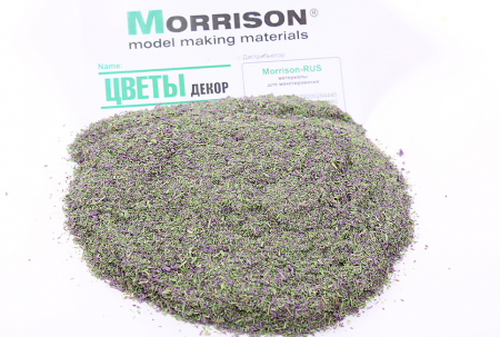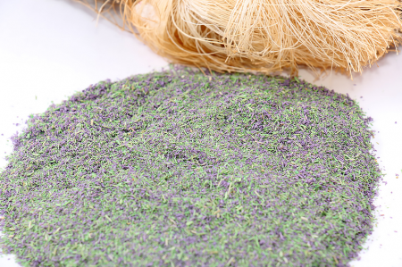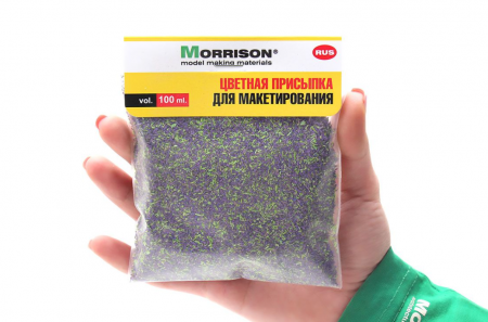 Присыпка в сочетании сиреневого и зеленого цветов создана для имитации цветочных насаждений на макетах и диорамах. Данное цветовое сочетание эффектно выглядит на макетах в качестве полей, усыпанных сиреневыми люпинами. Также сиренево-зеленое сочетание цветов может быть использовано в качестве имитации садовых ирисов, анютиных глазок, крокусов и т.д. Фасовка: 100 мл. (zip-lock пакет 100 х 100)