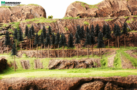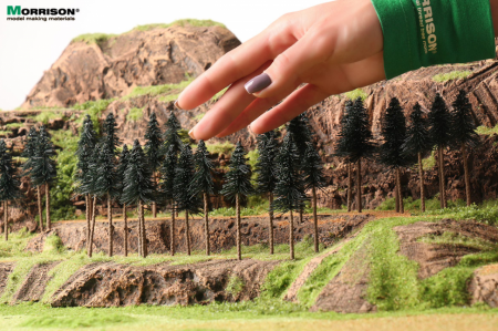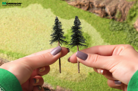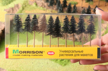 Миниатюрные модели сосновых деревьев высотой 8 см. для создания лесных ландшафтов на макетах в масштабе 1:300. Набор 10 штук.