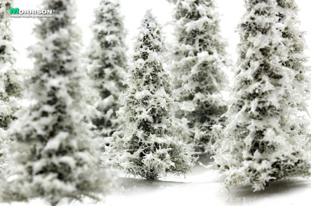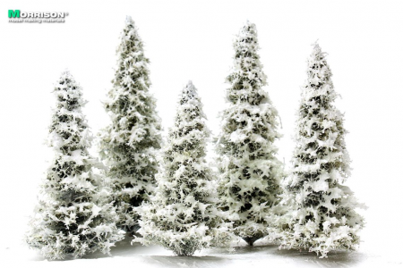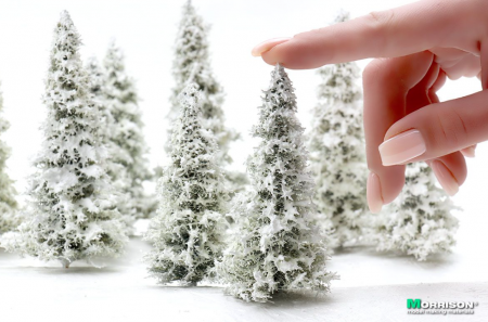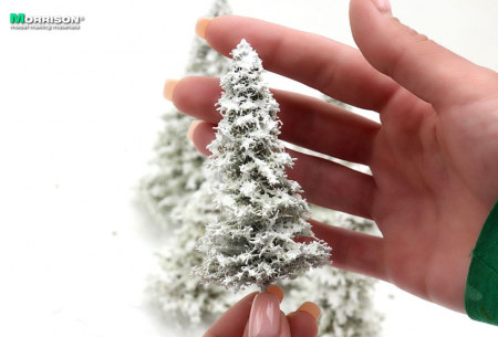 Реалистичные модели зимних елей для макетов и диорам с зимним пейзажем. Высота моделей 7-10 см. Набор 5 штук.
