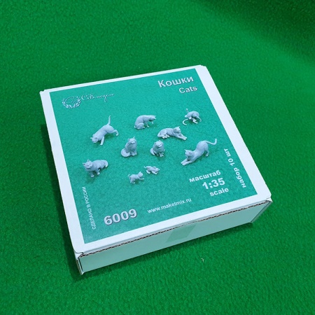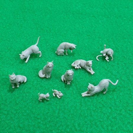 Набор из восьми фигурок кошек и двух играющихся котят - всего 10 шт. Масштаб 1:35. Фотополимерная смола.