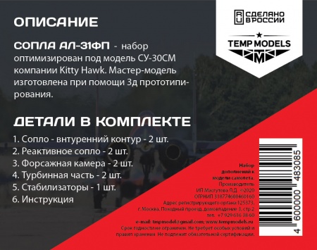 MP СОПЛА РЕАКТИВНОГО ДВИГАТЕЛЯ АЛ-31ФП НА СУ-30СМ (1/48) продается в 1 магазинах. Выберите подходящий Вам интернет-магазин и перейдите по ссылке «В магазин».