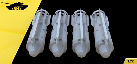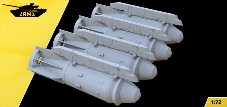 Мощное дополнение для диорам с Т‑4: комплект из четырёх фугасных авиабомб ФАБ‑3000, напечатанных на высокоточном фотополимерном 3D‑оборудовании. Точная геометрия корпуса, кольцевого стабилизатора и монтажных планок обеспечивает аккуратную посадку на пилоны и чистый финиш при окраске. Масштаб: 1:72 Состав: 4 бомбы ФАБ‑3000 с детализированными крепёжными планками Производство: 3D‑печать фотополимером (высокая детализация, ровные кромки) Совместимость: тяжёлые бомбардировщики 1:72, в том числе сцены с Т‑4 Сотка Назначение: реалистичная внешняя подвеска тяжёлых фугасных боеприпасов Почему это усилит модель: Передаёт характерный вид машины с тяжёлой загрузкой Добавляет визуальной драматургии перегоночным и предполётным сценам Минимум доводки и шпатлевки, готовность к покраске из коробки Подсказки по окраске: Базовые серо‑зелёные/оливковые тона, маркировка и штампы техобслуживания Лёгкая тонировка панелей, эксплуатационные следы вокруг планок и стабилизатора Для справки о прототипе: ФАБ‑3000 (М‑54) советская фугасная авиабомба массой порядка 3067 кг, длиной около 3,3 м; заряд тротила около 1,21,4 т, предназначена для поражения прочных сооружений и укрытий.