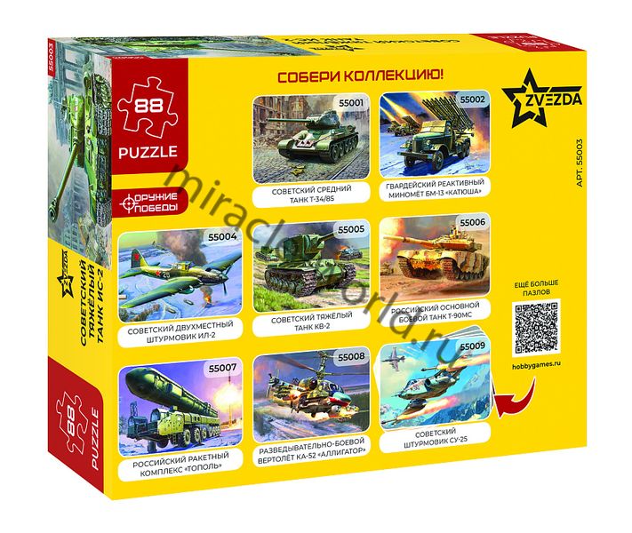 ЗВЕЗДА 55003 ПАЗЛЫ "СОВЕТСКИЙ ТЯЖЁЛЫЙ ТАНК ИС-2" (5011) продается в 1 магазинах. Выберите подходящий Вам интернет-магазин и перейдите по ссылке «В магазин».