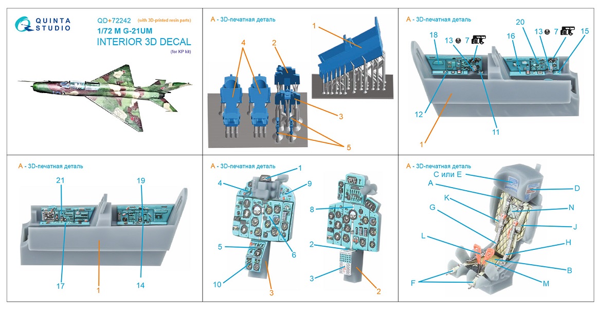 Купить QD+72242 ДЕКАЛИ 3D ДЕКАЛЬ ИНТЕРЬЕРА КАБИНЫ M&G-21УМ KP С 3D-ПЕЧАТНЫМИ ДЕТАЛЯМИ (1/72)