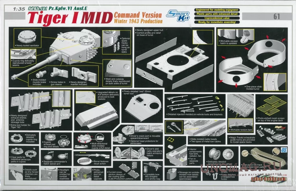 ТАНК SD.KFZ.181 PZ.KPFW VI AUSF.E TIGER I MID COMMAND VERSION, WINTER 1943 PRODUCTION cyber hobby 1/35