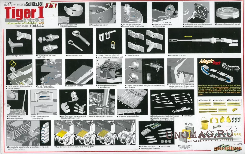 ТАНК PZ.KPFW.VI AUSF.E TIGER I INITIAL PRODUCTION, 1.KOMPANIE S.PZ.ABT.501 DAK, TUNISIA 1942/1943 (3 IN 1) (1/35) продается в 1 магазинах. Выберите подходящий Вам интернет-магазин и перейдите по ссылке «В магазин».