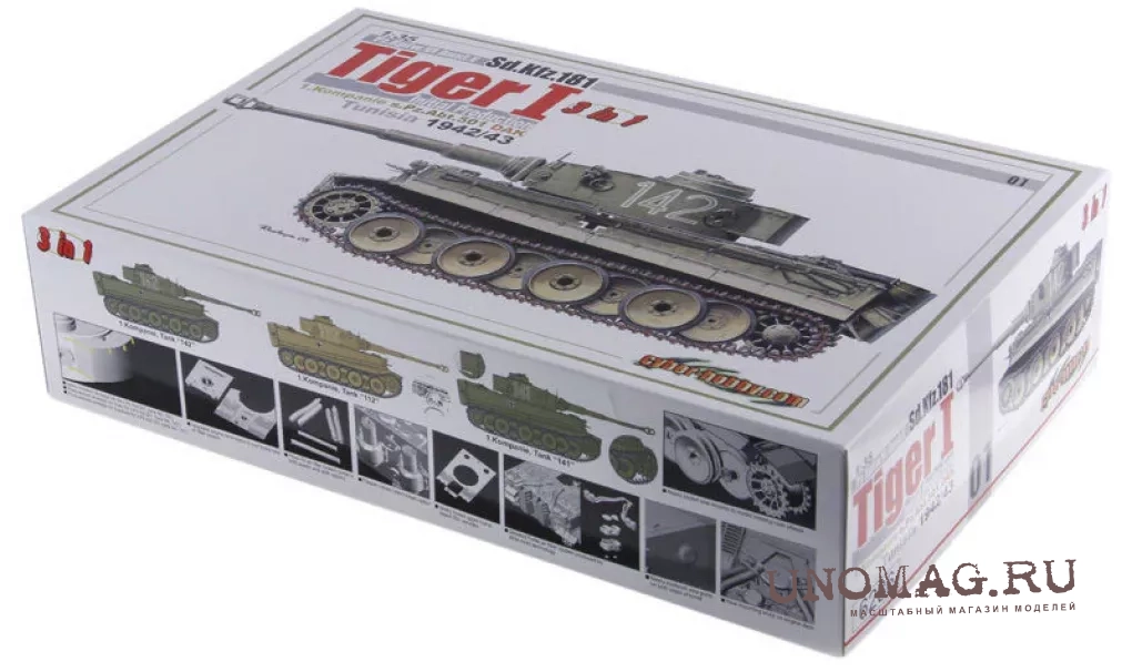 Купить ТАНК PZ.KPFW.VI AUSF.E TIGER I INITIAL PRODUCTION, 1.KOMPANIE S.PZ.ABT.501 DAK, TUNISIA 1942/1943 (3 IN 1) (1/35)