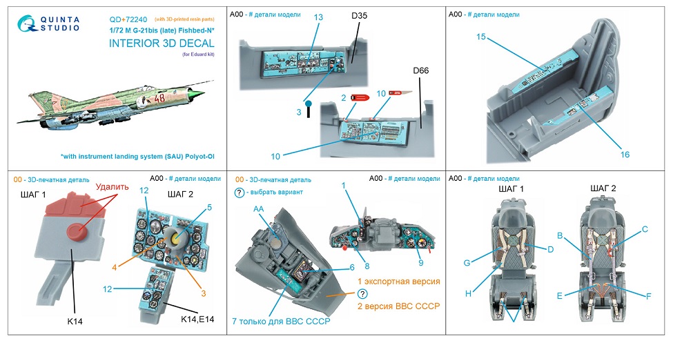 QD+72240 ДЕКАЛИ 3D ДЕКАЛЬ ИНТЕРЬЕРА КАБИНЫ M&G-21БИС ПОЗДНИЙ EDUARD 3D ДЕТАЛЯМИ (1/72) продается в 2 магазинах. Выберите подходящий Вам интернет-магазин и перейдите по ссылке «В магазин».