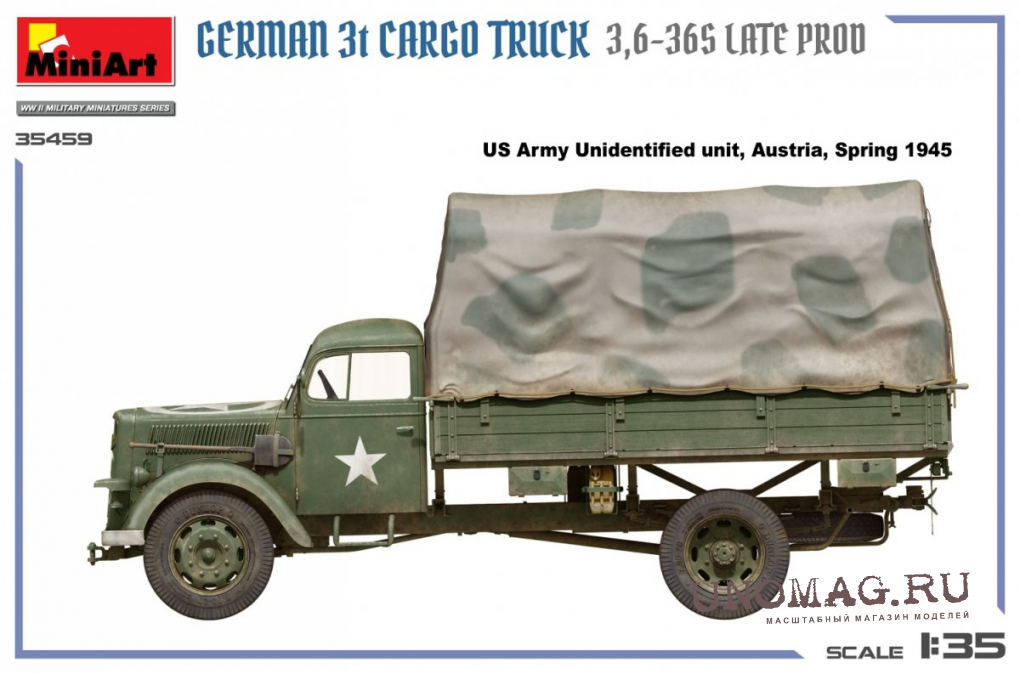 OPEL BLITZ GERMAN 3T CARGO MILITARY TRUCK 2-ASSI 1945 (1/35) продается в 1 магазинах. Выберите подходящий Вам интернет-магазин и перейдите по ссылке «В магазин».