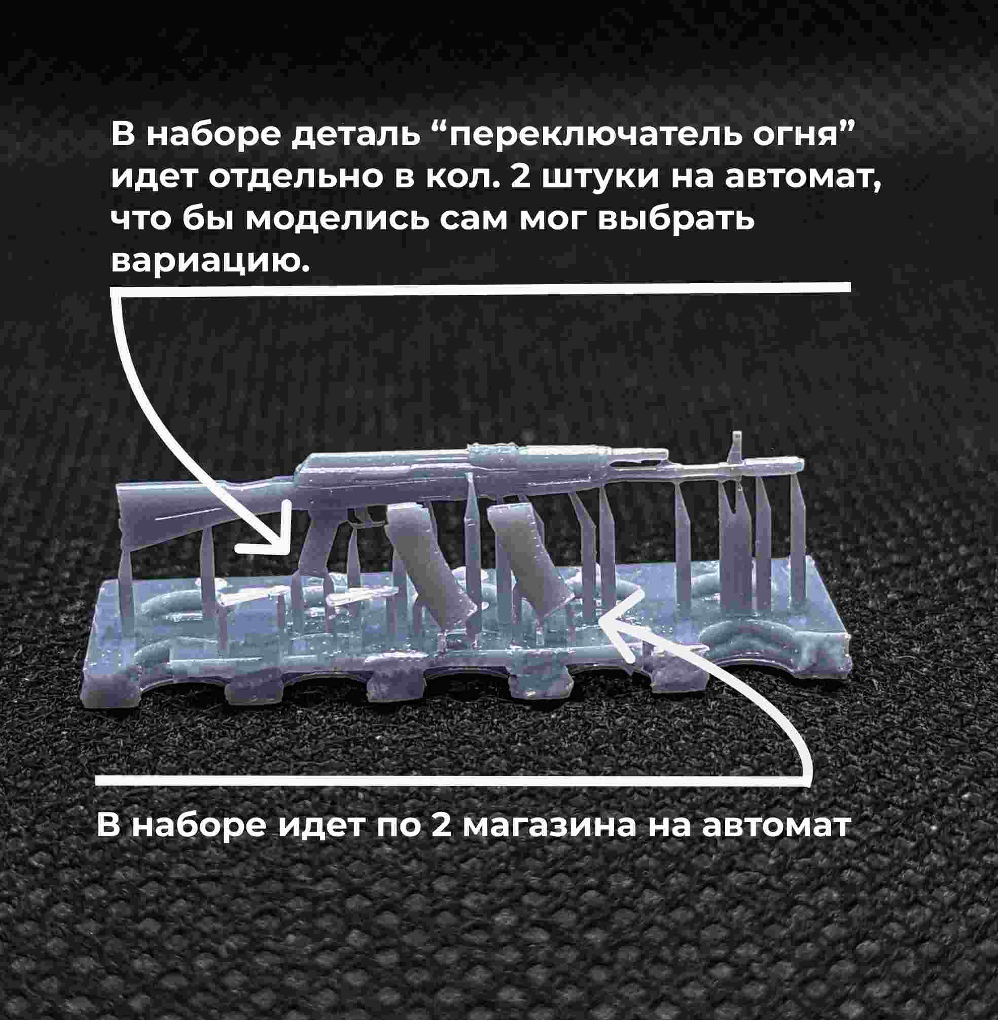 Описание Модели выполнены в 35м масштабе - самом распространенном масштабе для военно-исторических моделей. В наборе идет 5 штук моделей автомата, к каждому автомату идет по 2 переключателя огня, где один запасной в случае потери столь мелкой детали, и по 2 магазина один для крепления к автомату, а второй несет декоративную функцию. Переключатель огня идет отдельной деталью, что бы моделист мог сам выбрать какой выставить режим огня на миниатюре, исходя из своей задумки исполнения. Модели произведены из фотополимерной смолы серого цвета с высокой степенью детализации. Модели поставляются в разобранном виде на поддержках для лучшей сохранности при транспортировке и неокрашенные. (Клей и краски не входят в набор) Склейка производится цианакрилатным клеем (монолит/секундный/супер клей/космофен). Клей и краски не входят в комплект.