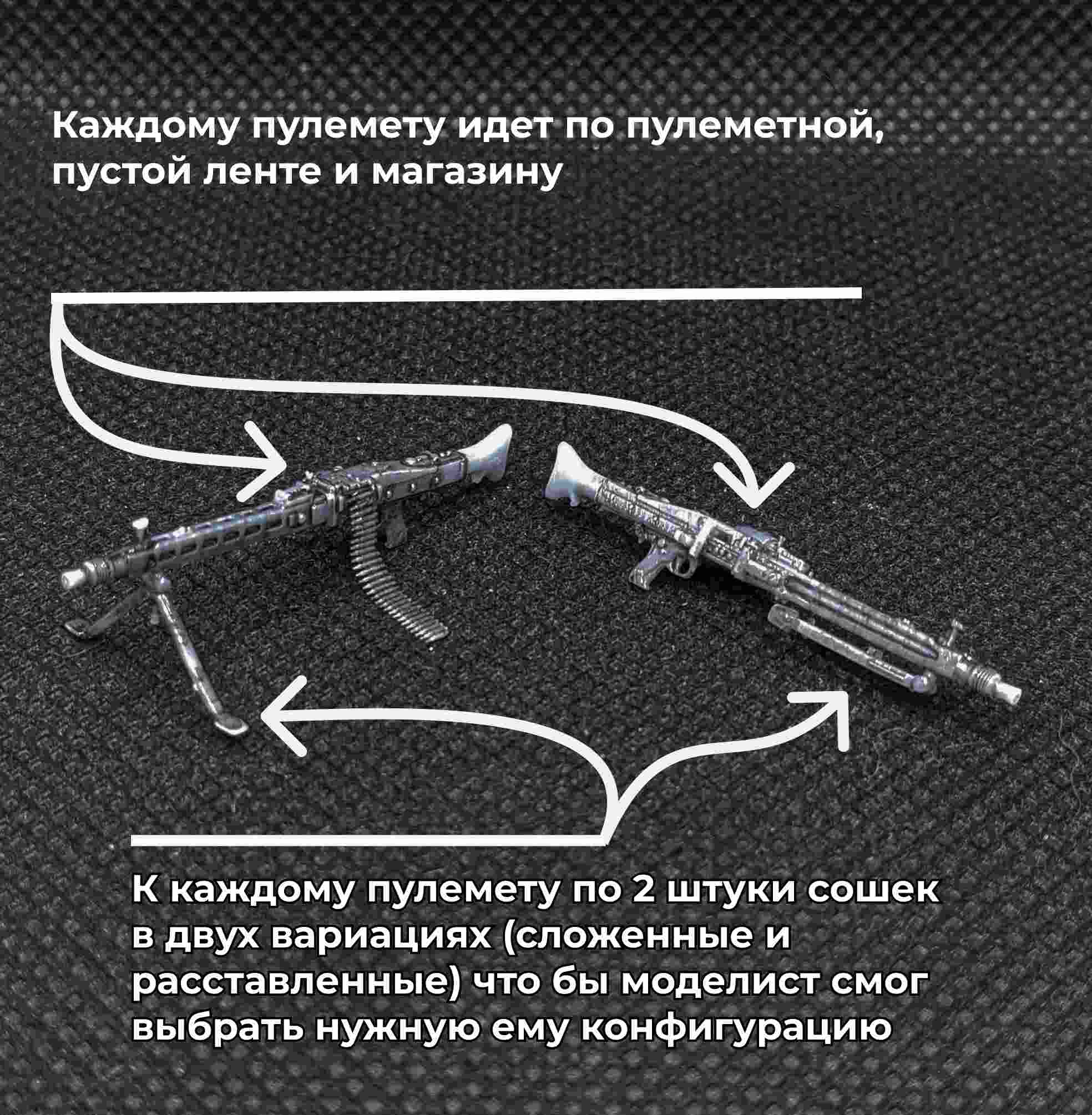 Описание В наборе идет 5 штук моделей пулемета, к каждому пулемету идет по 2 штуки сошек отдельной деталью в 2х вариантах (разложенный и сложенный), так же идет пулеметная лента, как с патронами так так и без, и магазин к каждому пулемету отдельной деталью, что бы моделист смог создать нужную ему конфигурацию оружия, что бы воплотить его творческий замысел. Модели произведены из фотополимерной смолы серого цвета с высокой степенью детализации. Модели поставляются в разобранном виде на поддержках для лучшей сохранности при транспортировке и неокрашенные. (Клей и краски не входят в набор) Склейка производится цианакрилатным клеем (монолит/секундный/супер клей/космофен). Клей и краски не входят в комплект.