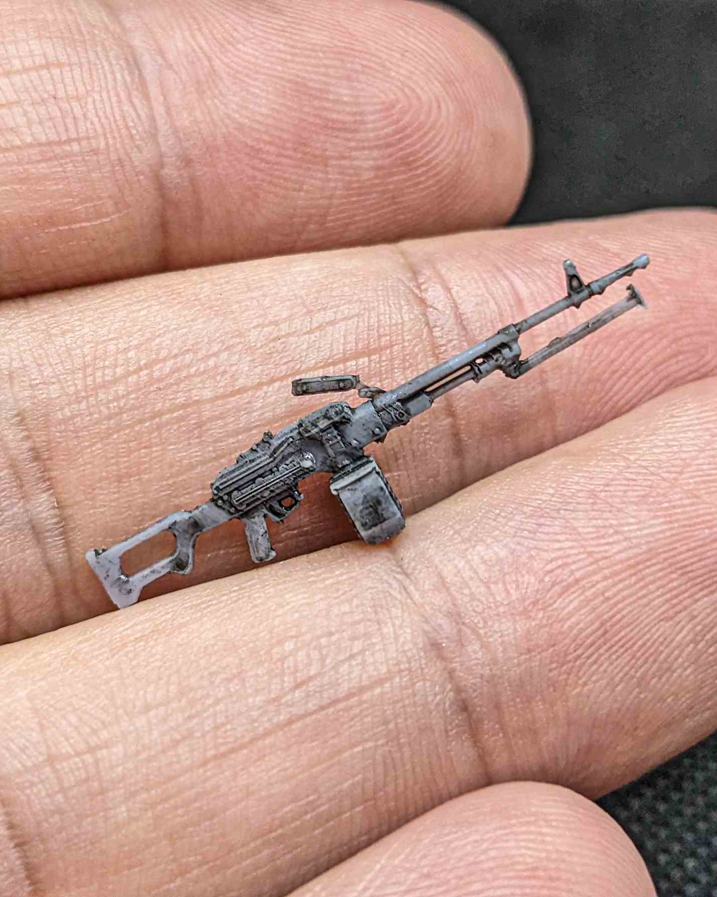 Описание В наборе идет 5 штук пулеметов в 35ом масштабе. К каждому идет отдельной деталью рукоять, сошки - по 2 штуки на пулемет в 2х вариациях - сложенном и разложенном и по 2 "магазина" с лентой и без. Модели произведены из фотополимерной смолы серого цвета с высокой степенью детализации. Модели поставляются в разобранном виде на поддержках для лучшей сохранности при транспортировке и неокрашенные. (Клей и краски не входят в набор) Склейка производится цианакрилатным клеем (монолит/секундный/супер клей/космофен). Клей и краски не входят в комплект.