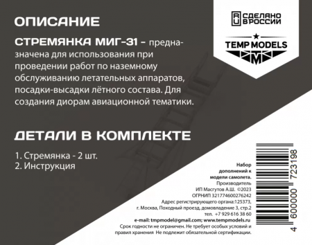 MP СТРЕМЯНКА ДЛЯ МИГ-31 (1/72) продается в 1 магазинах. Выберите подходящий Вам интернет-магазин и перейдите по ссылке «В магазин».