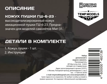 MP КОЖУХ ПУШКИ ГШ-6-23 МИГ-31 (1/48) продается в 1 магазинах. Выберите подходящий Вам интернет-магазин и перейдите по ссылке «В магазин».