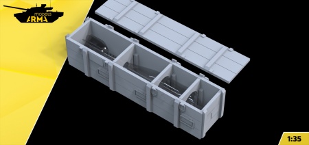Детализированная копия деревянного транспортного ящика для 240-мм мин (например, для комплектации 2С4 Тюльпан). Предмет разработан с максимальным вниманием к прототипу корпус с усиливающими накладками, металлические защёлки, ручки для переноски и разделительные перегородки. Крышка выполнена съёмной, что позволяет реалистично показать процесс погрузки или хранения боекомплекта. Особенности Точная геометрия, выразительная древесная фактура, детализированные элементы крепежа и фурнитуры. Внутри предусмотрены секции для размещения четырёх мин можно задействовать эффектную компоновку для диорамы. Модель подходит для сцен тылового обеспечения, склада боеприпасов, технического обслуживания. Окраска и оформление Фоновый цвет выцветшее дерево, с возможными следами эксплуатации и маркировки. Фурнитуру рекомендуется окрасить в тёмный или металлический оттенок. Ящик органично смотрится в составе комплексной сцены или отдельно, рядом с техникой, расчётом или грузовой зоной. Применение Тема: артиллерийская диорама, боезапас, полевой склад, работа экипажа. Может использоваться как акцентный аксессуар в различных композициях 1970-х современности.
