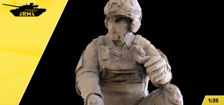 Фигурка четвёртого члена расчёта самоходного миномёта 2С4 Тюльпан современный российский военнослужащий в экипировке: бронежилет, каска, подсумки, тактические наколенники. Изображен в динамичной рабочей позе (сидя на корточках, осматривает или поддерживает боеприпас, оборудование или взаимодействует с расчётом), что отлично подходит для диорам обслуживания и подготовки техники. Особенности Подробная деталировка защитного снаряжения и формы. Масштаб 1:35, унифицирована для композиций с техникой и расчётом. Универсальный образ для диорам боевой работы, обслуживающих или ремонтных процессов. Окраска и оформление Современный вариант камуфляжа ВС РФ: цифра, защитный зелёный, элементы личных знаков и технических потёртостей. Возможна деталировка шевронов и индивидуальных особенностей конкретного бойца. Применение Для сюжетов подготовки к стрельбе, технического обслуживания, взаимодействия с другими членами экипажа 2С4 Тюльпан. Отлично впишется в ансамбль боевого/тылового обслуживания САУ и сопутствующей техники.