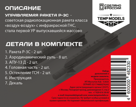 Купить 48233 УПРАВЛЯЕМАЯ РАКЕТА Р-3С (1/48)