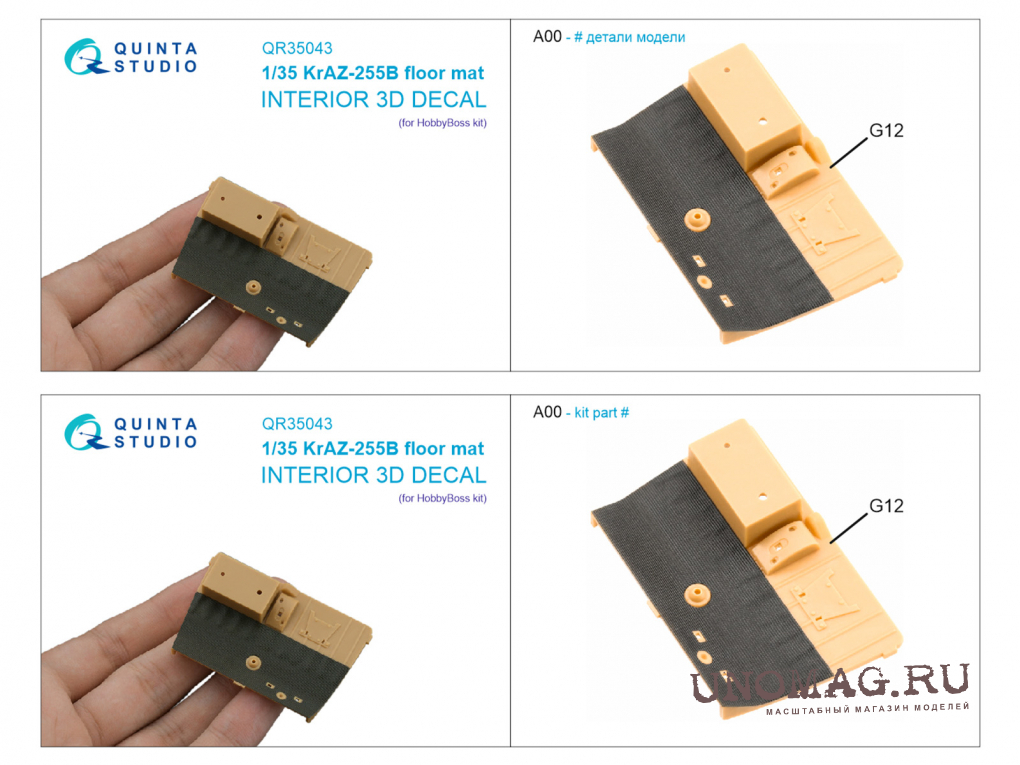3D ДЕКАЛЬ КОВРИК НАПОЛЬНЫЙ ДЛЯ КРАЗ-255Б (HOBBYBOSS) (1/35) продается в 1 магазинах. Выберите подходящий Вам интернет-магазин и перейдите по ссылке «В магазин».