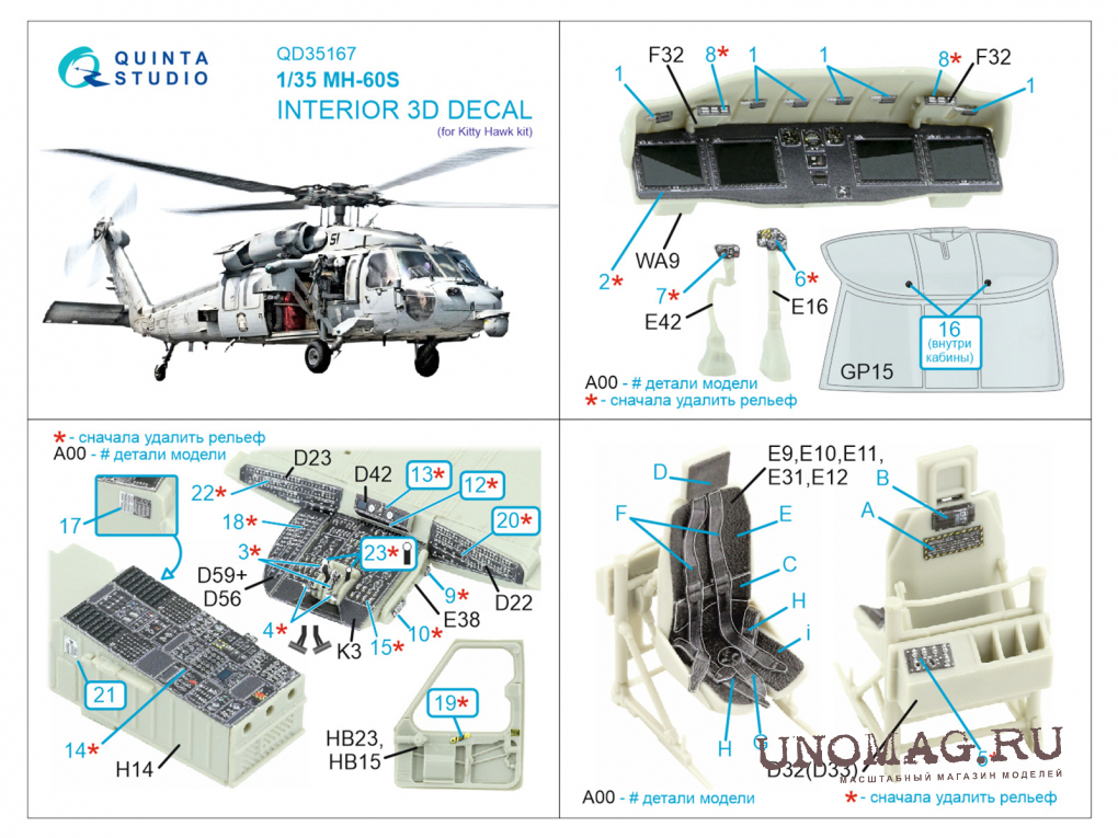Купить 3D ДЕКАЛЬ ИНТЕРЬЕРА КАБИНЫ МН-60S KNIGHTHAWK (KITTY HAWK) (1/35)