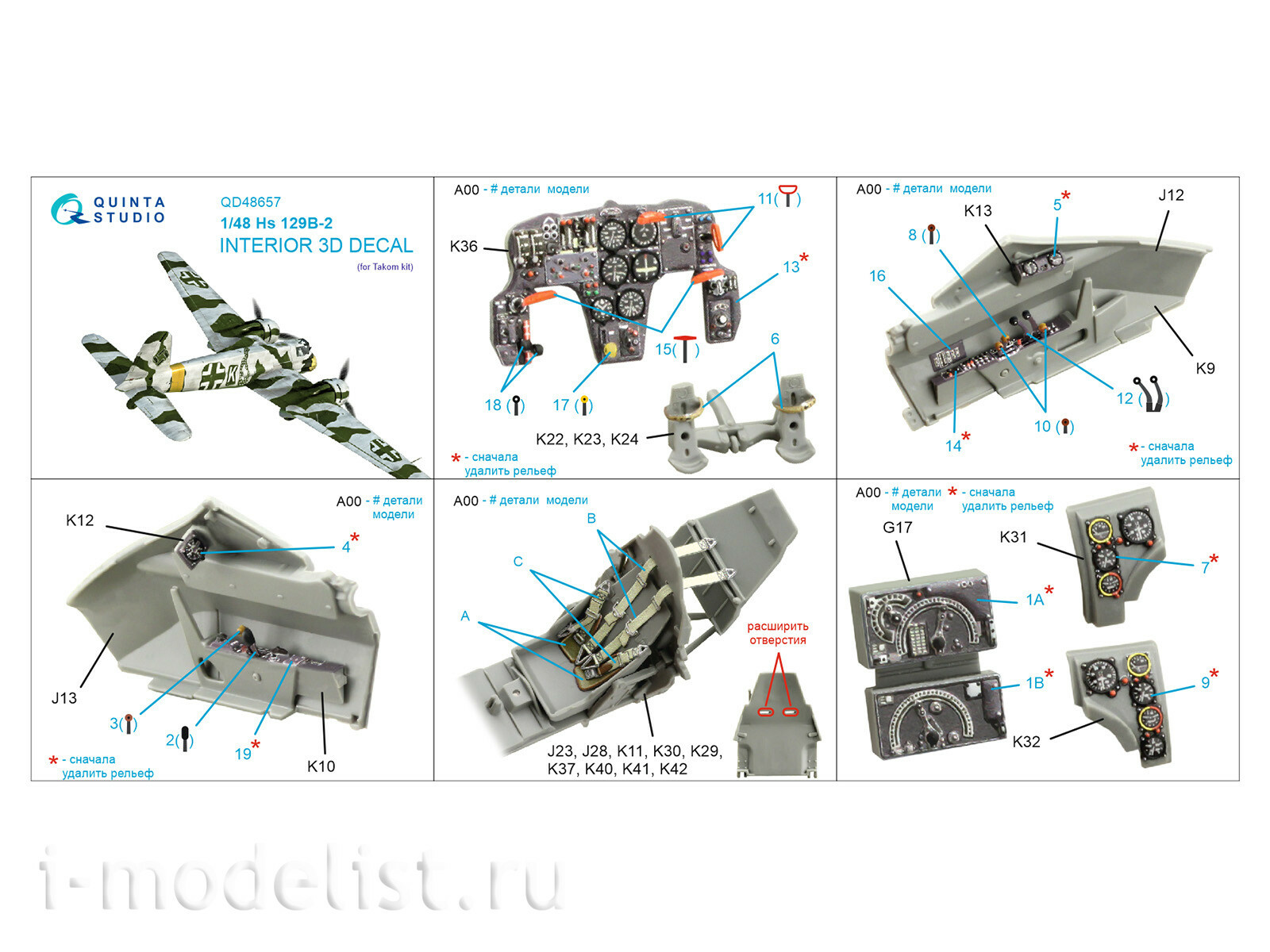 Купить QD48657 QUINTA STUDIO 1/48 3D ДЕКАЛЬ ИНТЕРЬЕРА КАБИНЫ HS 129B-2 (TAKOM) (1/48)