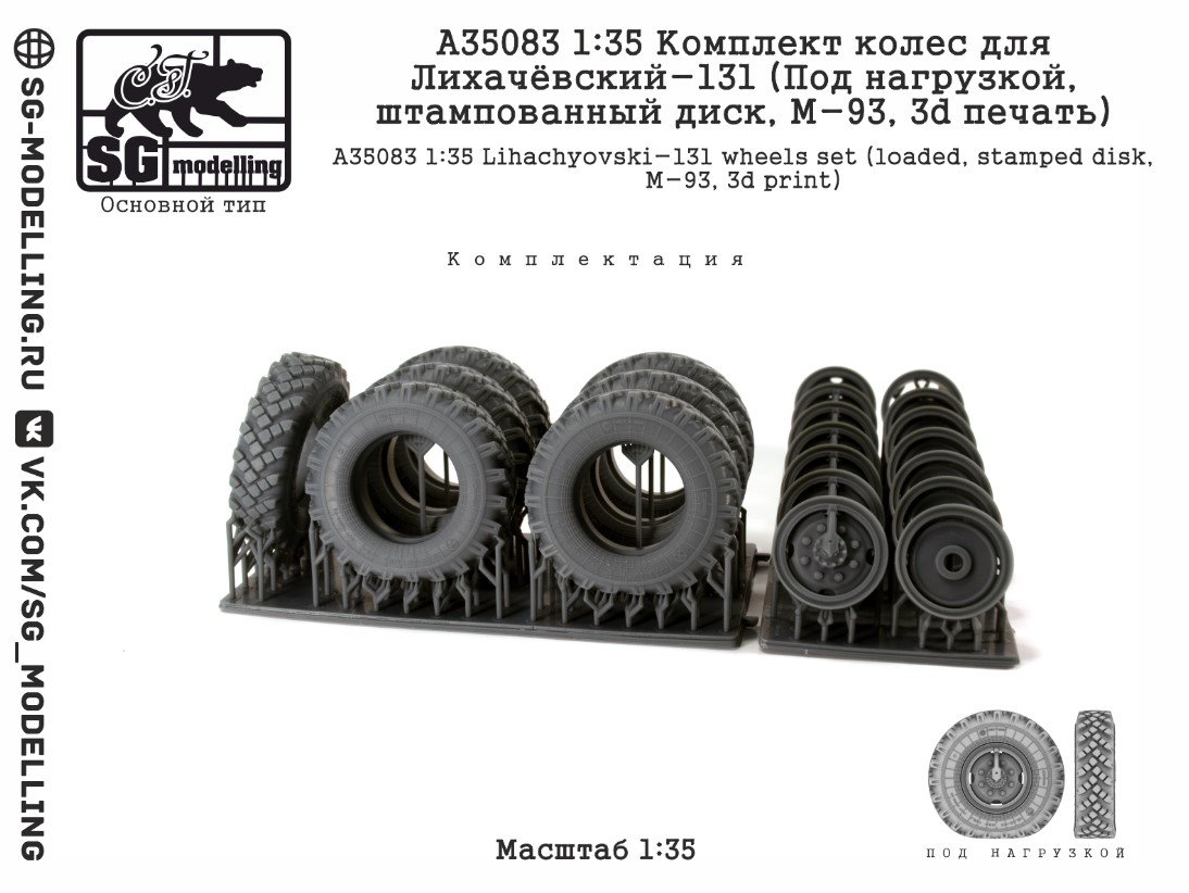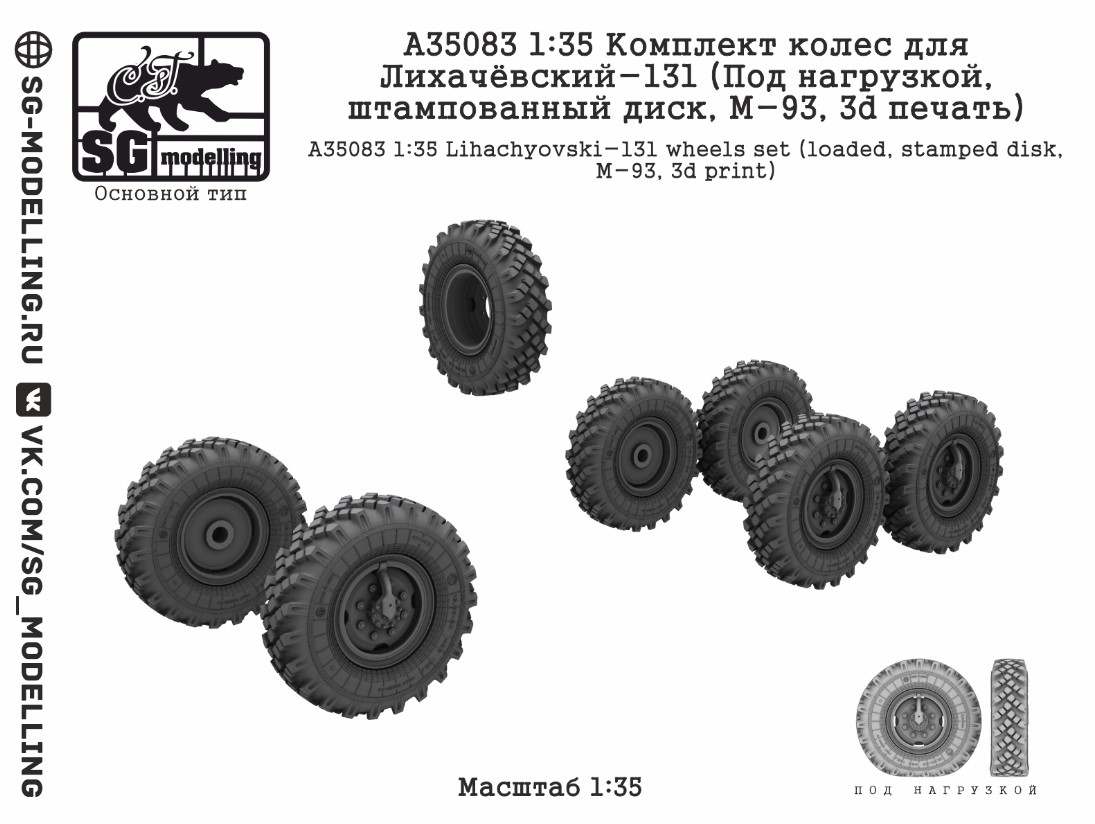 Описание A35083 дополнения из смолы Комплект колес для Л-131 (Под нагрузкой, штампованный диск, M-93, 3d печать) (1:35)
