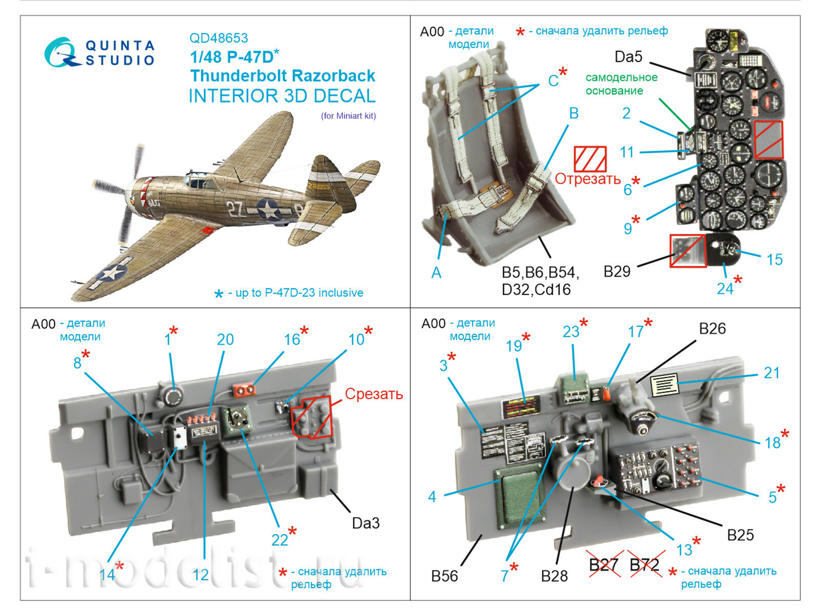 Купить QD48653 QUINTA STUDIO 1/48 3D ДЕКАЛЬ ИНТЕРЬЕРА КАБИНЫ P-47D THUNDERBOLT RAZORBACK (MINIART) (1/48)