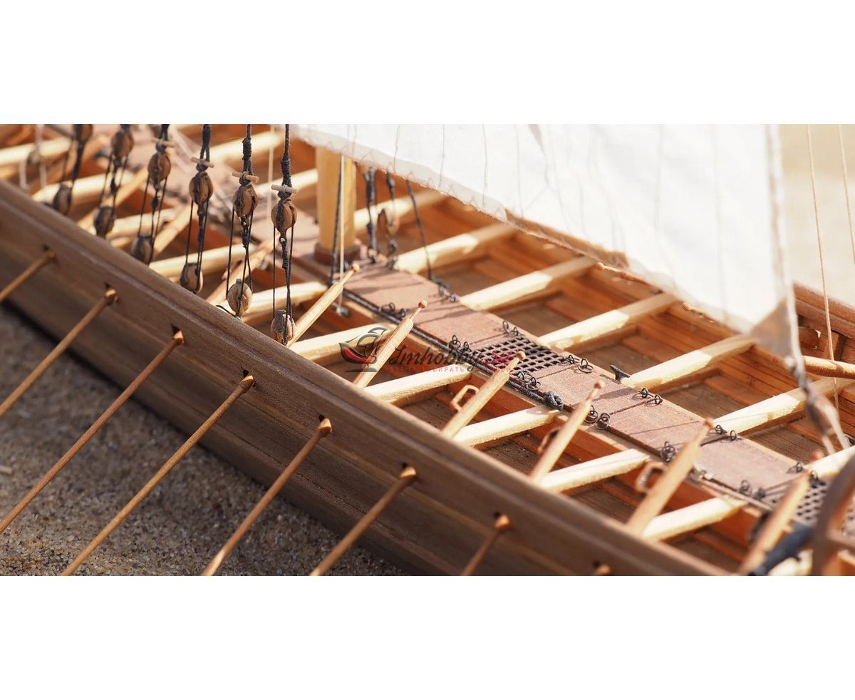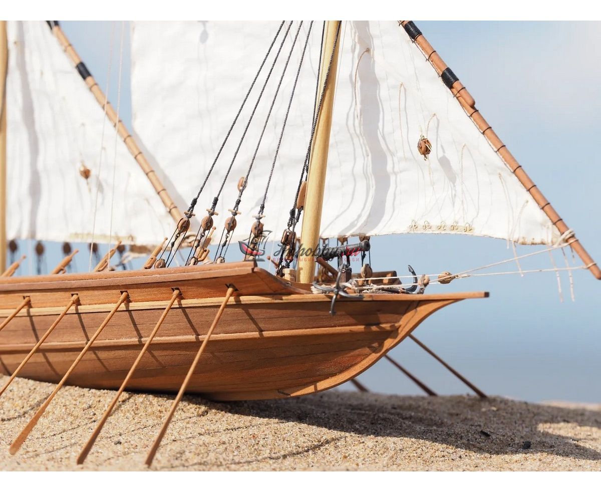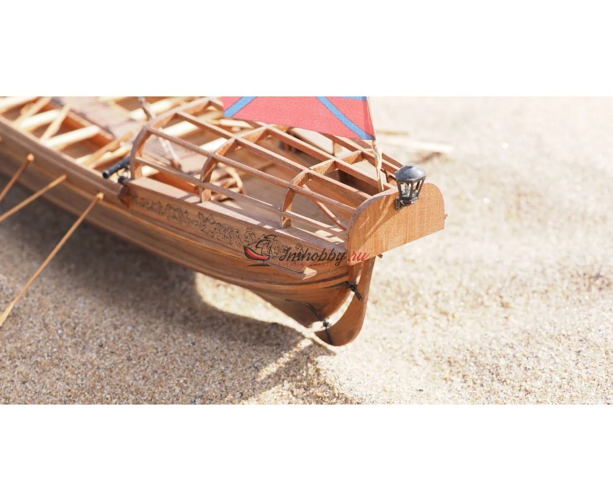 Сборная деревянная модель Азовская скампавея в 48 масштабе от Technell. 19 июля 1696 года русским войскам удалось захватить турецкую крепость Азов. Россия завоевала выход в Азовское море. После этого Боярская Дума постановила Морским судам быть, а принятая осенью 1696 г. Программа предполагала построить корабли на Азовском море. Под это дело по просьбе Петра I венецианский сенат направил в Россию капитана Джакомо (Якова) Моро с 13 мастерами для строительства гребного флота. На Воронежской верфи. Из документов известно, что итальянские мастера строили скампавеи двух типов, оба типа имели две мачты с латинскими парусами и вооружались 2-фунтовой пушкой на носу и двумя 1-2-фунтовыми дробовыми пушками у каюты. Особенностью набора является каркас, с большим количеством шпангоутов. Мы начитали около 40 шпангоутов при небольшой длине корпуса. Обшивка корпуса выполняется из груши, пояса для обшивки уже вырезаны лазером нужной формы. Настил палубы цельными пластинами, на которых выгравирован рисунок палубной раскладки. Всё остальное типично для наборов текущего времени: большое количество вырезанных лазером деревянных деталей, немного фототравления, три литых черненных пушки, отсутствие реек, круглых заготовок и готовых блоков для такелажа. Мачты и реи надо будет сделать круглыми из квадратных заготовок, а блоки склеить послойно из вырезанных плоских деталей. Готовые паруса, немного синтетических нитей двух цветов для такелажа, флаги и вымпелы, подробная пошаговая фотоинструкция. Завершает модель подставка с названием судна. Спецификации: Масштаб - 1:48Длина - 520 ммВысота - 330 ммШирина - 94 мм