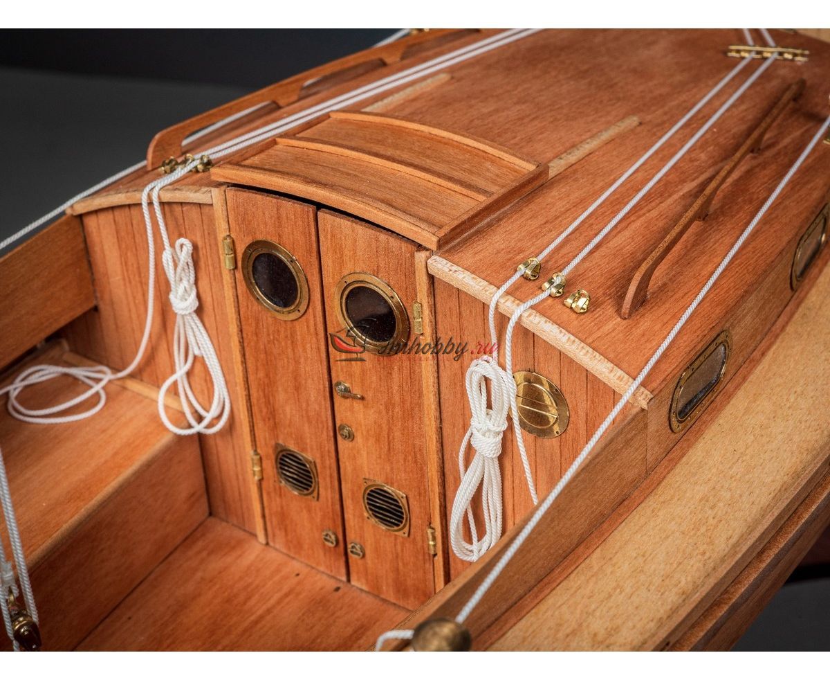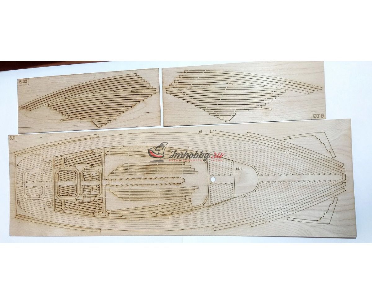 Сборная деревянная модель Яхта Folkboat комплектация Стандартная в 16 масштабе от Technell. Яхта Фолькбот рассчитана на крейсерское плавание с небольшим удалением от берега, а также для участия в гонках среди судов соответствующего класса. Первый "Фолькбот" появился на верфи Арендалс в Гетеборге и весной 1942 года был спущен на воду. Яхта строилась из самого дешевого дерева сосны или лиственницы, с клинкерной обшивкой на медных гвоздях. Чугунный балластный киль составлял 50% ее водоизмещения.Новую яхту придирчиво изучали, но уже первые выходы привели специалистов в полный восторг, "Фолькбот" вел себя в море великолепно. Конструкция яхты рассчитана на постройку малой серией на небольших верфях или на самостоятельную постройку при условии использования традиционных материалов и методов. В СССР "Фолькботы" выпускались до 1970 г. Таллинской экспериментальной верфью спортивного судостроения в классическом варианте этого класса. Яхты широко используются и в настоящее время для спортивных плаваний и гонок на средние дистанции. Состав набора яхты "Фолькобот"Изначально мы с некоторым скепсисом открывали коробку с этой моделью яхты. Она казалась нам примитивной и не интересной в сборке. Однако увидев содержимое набора, мы изменили своё мнение. Шикарные и весьма ювелирные точеные детали из латуни, много мелкого фототравления, продуманно вырезанные аккуратные окна, хорошие материалы корпуса и другие фишки модели заставили нас удивиться и признать, что модель очень насыщена мелкими деталями и весьма недурна собой! Итак, в коробке вы должны найти 13 листов с уже вырезанными деревянными деталями яхты, начиная от каркаса корпуса и кончая подставкой. Там же лежат три листа фототравления с мелкими деталями, точеные или литые утки, барабаны лебедки, шкивы, прекрасные талрепы (надеемся, что вы знаете этот термин), круглые заготовки, нити для такелажа и ткань для парусов. Особенности модели: обшивка корпуса яхты клинкерная из уже вырезанных поясов (шпон ольхи толщиной 0,6 мм). На шпангоутах нет выступов, надо подклеивать клинышки (если в комплекте) по меткам на шпангоутах. Фотоинструкция пошаговая, цветная, содержит 125 шагов (поверьте, для гоночной яхты это немало!). К фотоинструкции прилагается текстовые пояснения на 15 страницах убористым шрифтом. И в заключение идут чертежи: 4 листа формата А3 и один лист формата А1! Спецификации: Масштаб - 1:16Длина - 478 ммВысота - 757 ммШирина - 143 мм