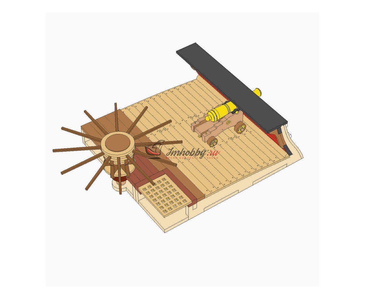 Купить ПАЛУБА, ФРАГМЕНТ С ПУШКОЙ И ШПИЛЕМ МАСШТАБ 1:48