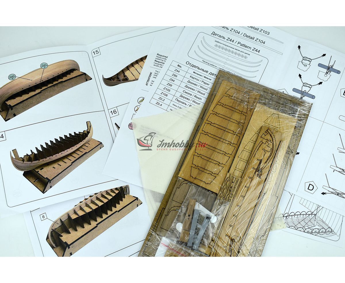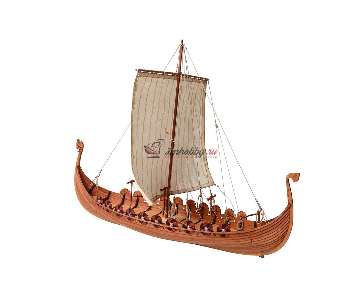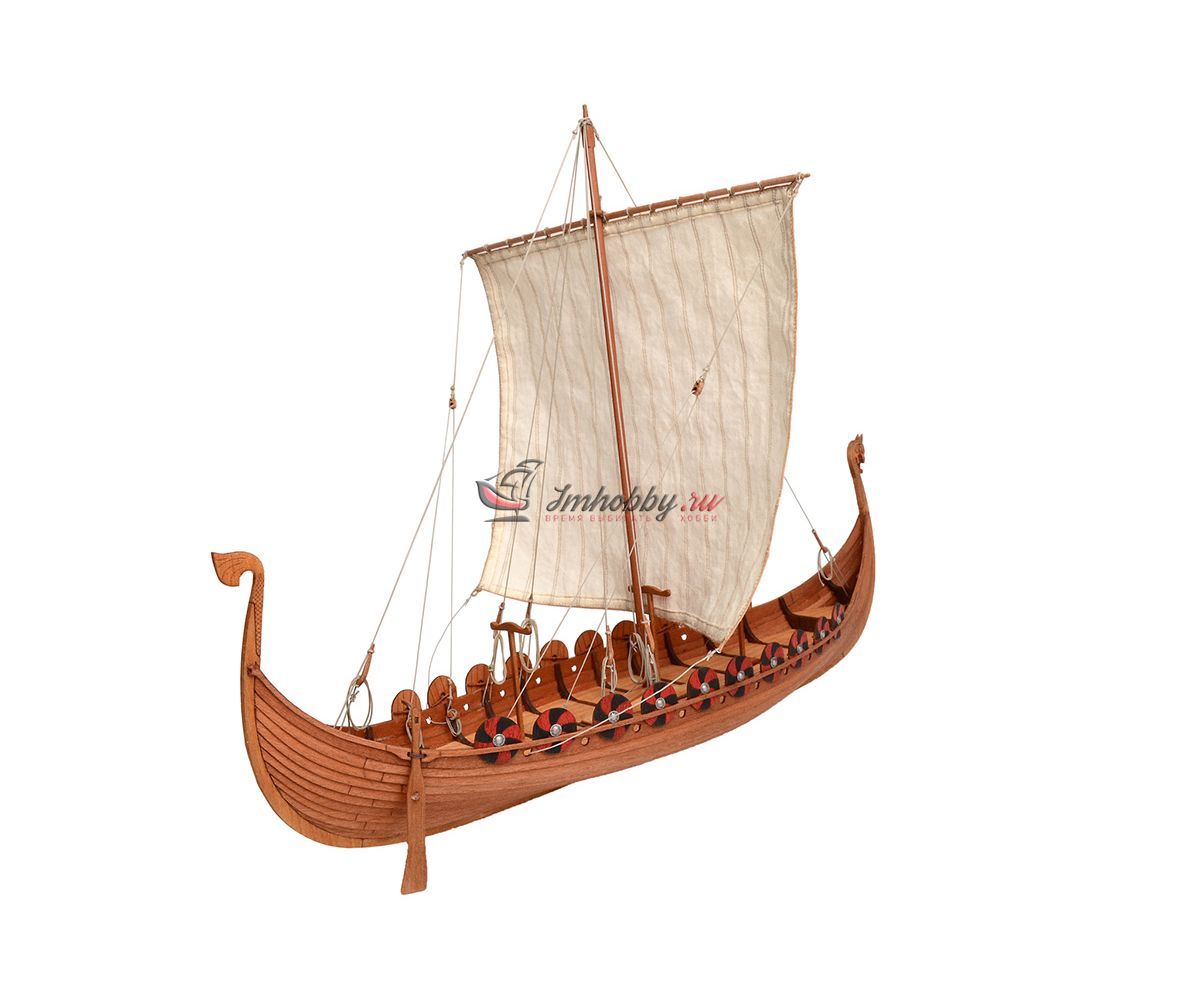 Ладья - славянское парусно-гребное судно для морских и речных походов. Форма и размеры зависели от региона плавания и назначения, но общий способ постройки и конструкции был объединяющим. Сначала изготавливался киль и штевни, далее обшивались борта и только потом устанавливали шпангоуты и бимсы. Все детали вырубали в основном используя различные топоры, строго соблюдая направление волокон древесины. Особенности:Лазерный раскрой каждой доски обшивки и деталей.Модель собирается в каркасе (кондукторе), который после сборки удаляется.Особая конструкция корпуса, компенсирующая деформацию материалов.Пошаговая фото-инструкция, чертежи. Характеристики набора:Длина - 200 ммШирина - 120 ммВысота - 156 ммМасштаб 1:72Производитель - Фальконет, Россия.