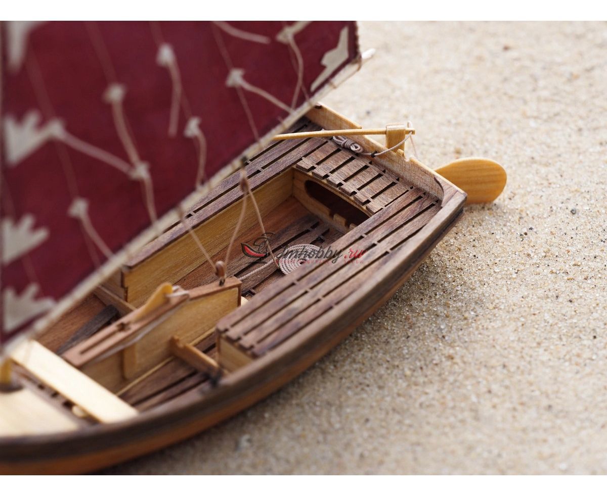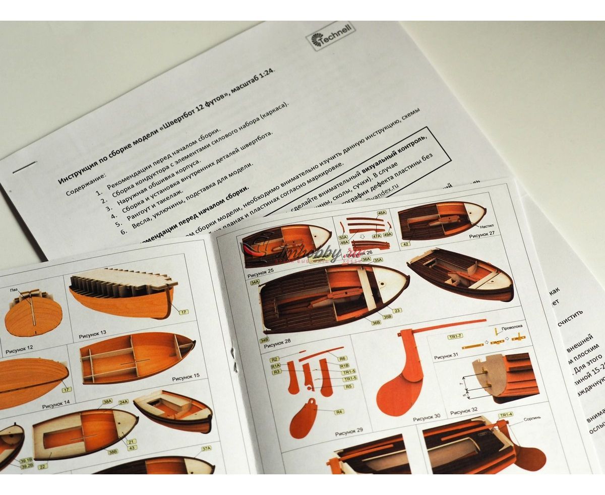 Сборная деревянная модель Швертбот 12 футов в 24 масштабе от Technell. Красивая и простая в сборке модель имеет большой выразительный парус, складной шверт (выдвижной плавник) и два весла. В набор входят: раскроенные путем лазерной резки деревянные плашки (орех, береза, фанера), пошитый парус, нитки, пластина с фототравлёными деталями, латунная проволока, подробная текстовая и фотоинструкция по сборке модели и такелажа. Особенностью набора является фанерный кондуктор, который обеспечивает легкую укладку досок обшивки и извлекается после сборки корпуса. Для большей реалистичности модели можно сохранить подвижность руля и шверта. Основные пластины с деталями для сборки выполненные из березы, обшивка корпуса из шпона анегри, планширь и буртики из ореха, все детали имеют четкий лазерный раскрой. Легкую и увлекательную сборку модели обеспечит подробная текстовая и фотоинструкция. Спецификации:Масштаб - 1:24Длина - 155 ммВысота - 250 ммШирина - 74 мм