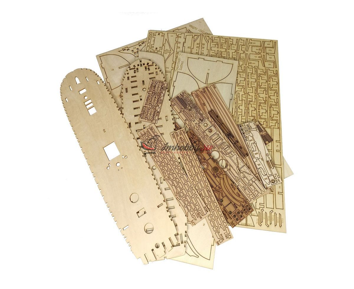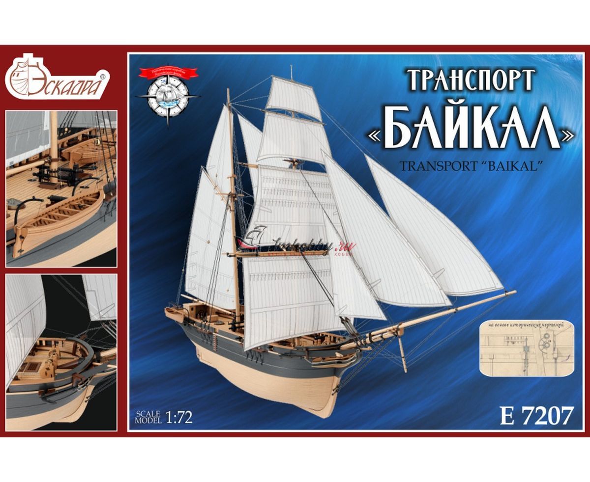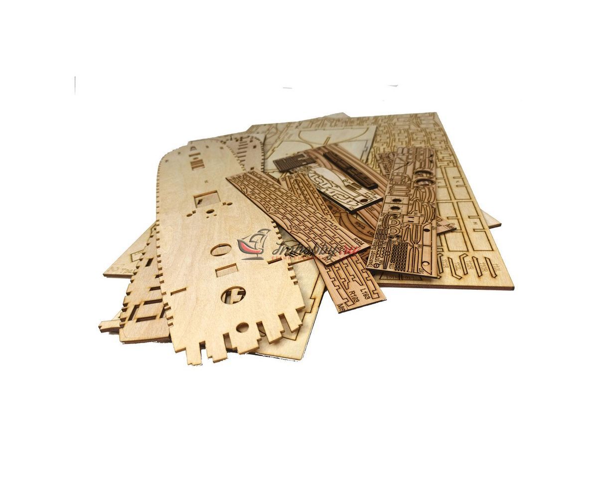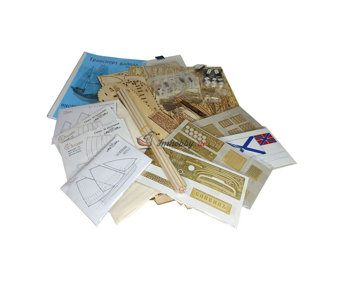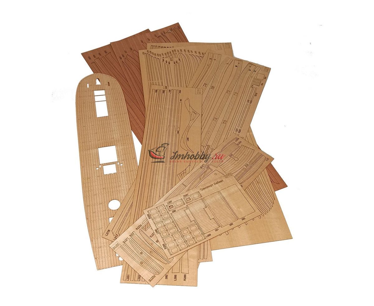 Сборная деревянная модель транспорт Байкал в 72 масштабе. В 1849 г. началась Амурская экспедиция Г. И. Невельского на транспорте Байкал с целью исследования и освоения Амура, Приамурья, Сахалина, Уссурийского края. В результате экспедиции Дальний Восток был закреплен за Россией. Материалы:Фанера, шпон, древесный массив-ламель, латунное литьё (пушки, штурвал, анкера, якоря, брашпиль, шлюпбалки, помпа и пр.), точёные деревянные элементы (юферсы, блоки), заготовки мачт, ткань для парусов (перкаль). Особенности набора: Разработан на основе исторических чертежейВысочайшая копийность и прекрасная визуализацияЛатунное литьеТоченые деталиКачественное фототравлениеЛазерный раскрой деревянных деталейНабор комплектуется 8-ми весельным рабочим катером, 4-х весельным ялом и двумя 4-х весельными гичками, профессиональными элементами для такелажа. Понятная инструкция, а также подробная инструкция по проводке такелажа. Спецификации:Масштаб - 1:72Длина - 750 ммВысота - 550 ммШирина - 300 мм Внимание!Медная (латунная) обшивка, основание и держатели, показанные на фото, НЕ входят в комплект поставки.