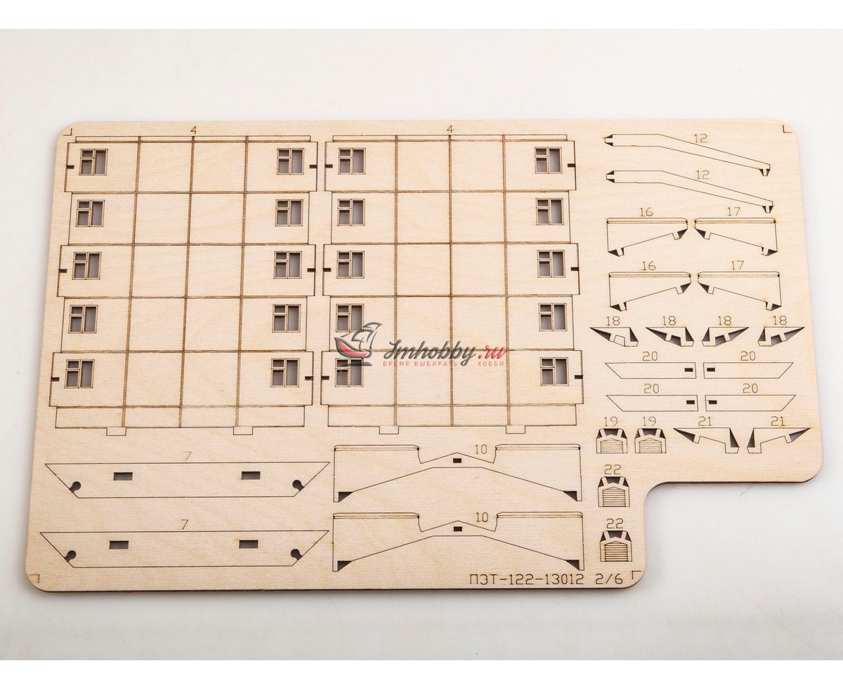Сборная масштабная модель Хрущевка пятиэтажный дом с подсветкой из фанеры. Детали изготовлены методом лазерной резки. Для сборки понадобятся столярный клей ПВА, модельный нож, надфиль (или наждачная бумага/губка). При желании модель можно окрасить или покрыть морилкой/лаком. Спецификации:Масштаб: 1:122Размеры: 296x148x118 ммКоличество деталей: 219Материал: ФанераПроизводитель: baumi (Россия)