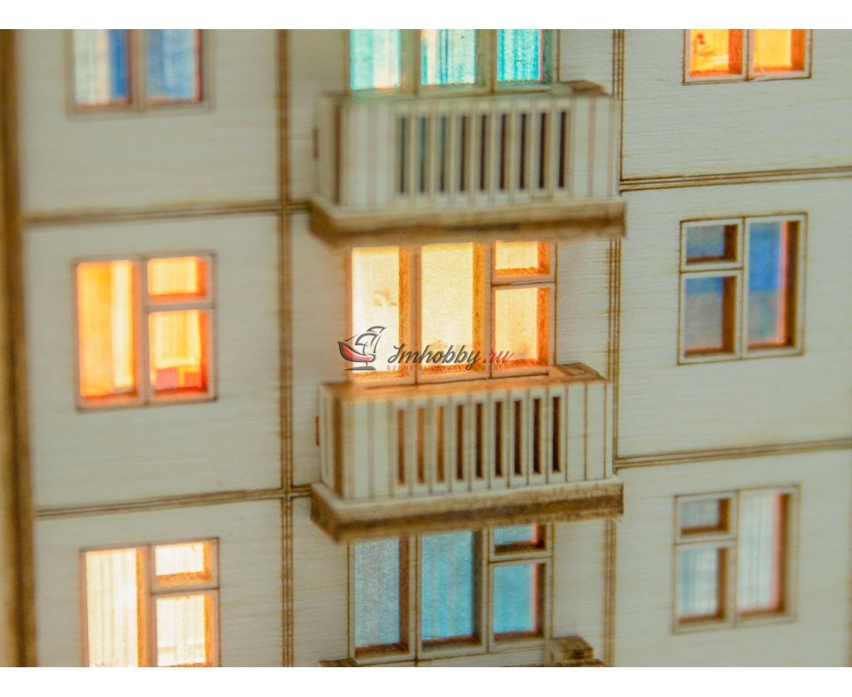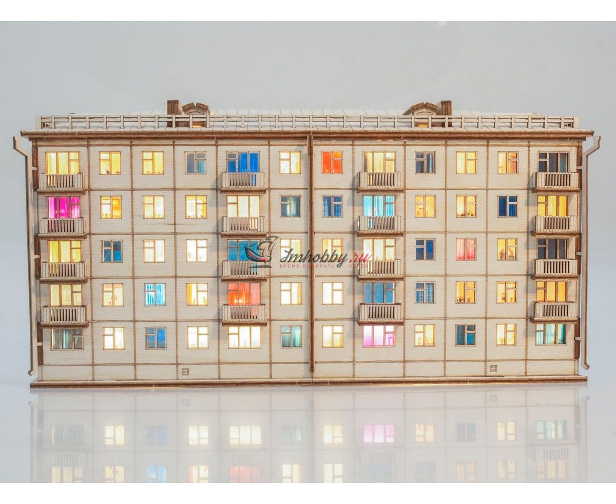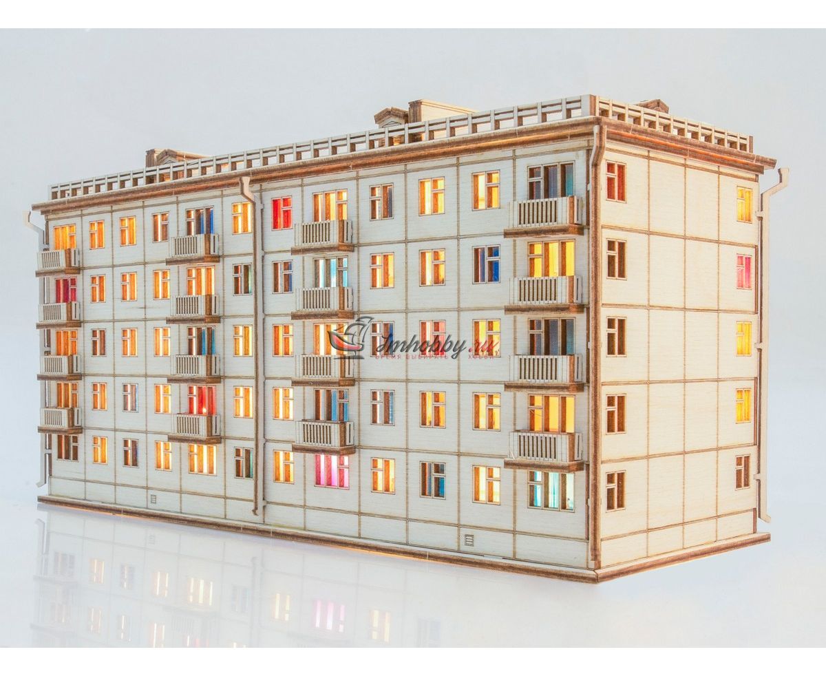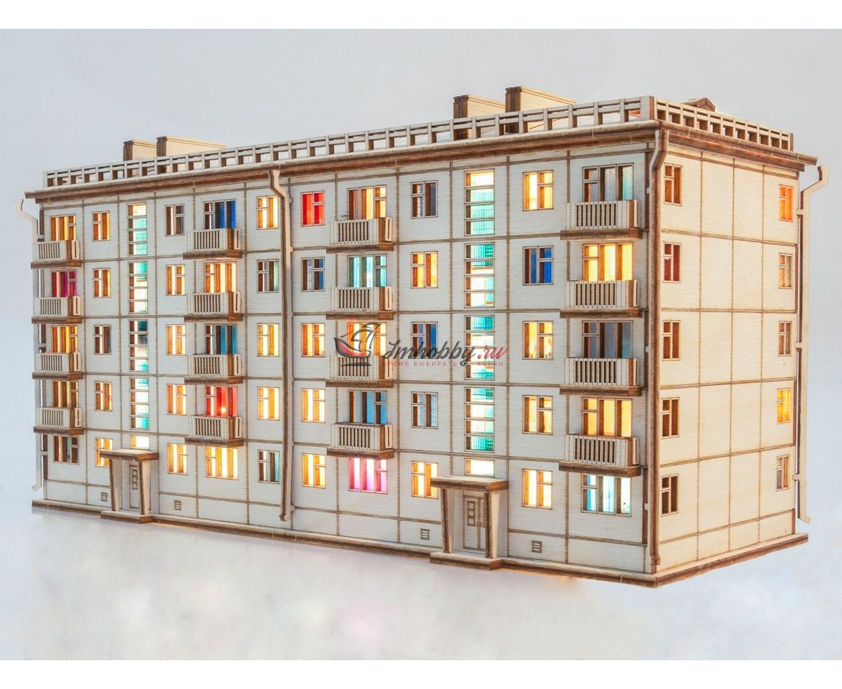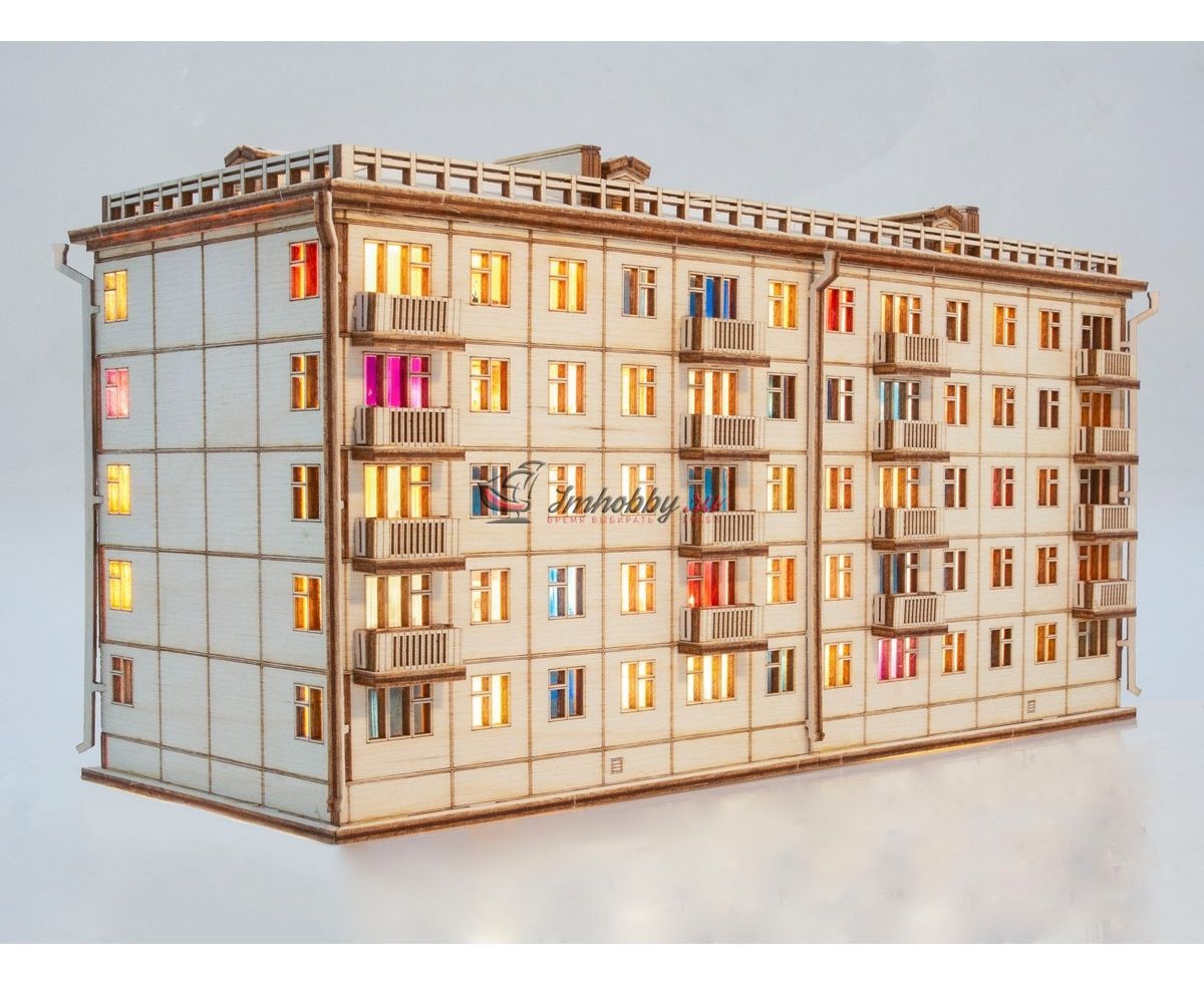 Купить СБОРНАЯ МОДЕЛЬ ХРУЩЕВКА ПЯТИЭТАЖНЫЙ ДОМ С ПОДСВЕТКОЙ