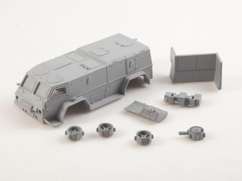 Описание 39371 "Водник" это российский высокомобильный бронеавтомобиль многоцелевого назначения, предназначенный для перевозки личного состава и грузов, а также для установки различного вооружения и оборудования. Главной особенностью машины является модульная конструкция. Она состоит из переднего (несменяемого) модуля с отделением управления и заднего съемного модуля. Это позволяет быстро переодеть машину из бронетранспортера в санитарный автомобиль, командный пункт или мобильный узел связи. Сварной корпус обеспечивает защиту экипажа от стрелкового оружия. Благодаря полному приводу (4x4) и независимой торсионной подвеске, Водник эффективно работает в труднопроходимых районах. Машина является амфибией. Она способна преодолевать водные преграды вплавь, используя вращение колес для движения по воде.