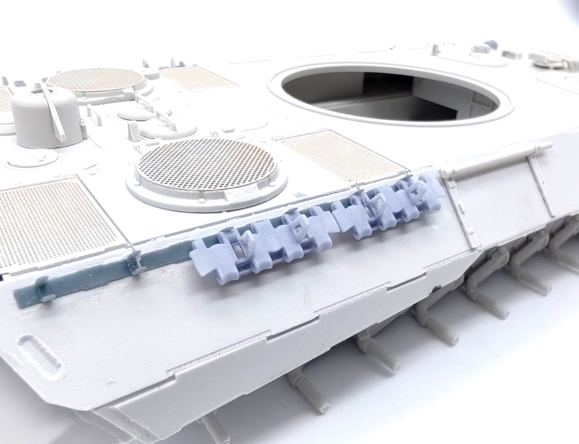 Описание Крепления для запасных траков для Pz Kpfw V "Panther" (поздние) Масштаб 1/35 Изделия выполнены способом 3д печати на высококачественном фотополимерном принтере, не окрашены, могут иметь следы поддержек или фактуру печати.