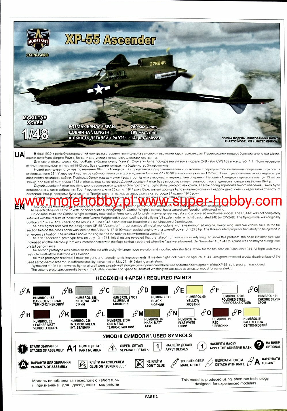 MODELSVIT 4808 XP-55 ASCENDER 1/48 (1/48) продается в 1 магазинах. Выберите подходящий Вам интернет-магазин и перейдите по ссылке «В магазин».